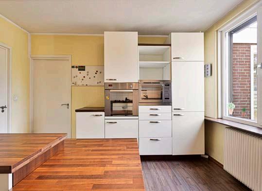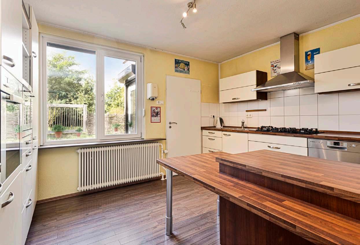 Er bevinden zich 2 ruime, gesloten keukens die zijn voorzien van alle gemakken, waaronder inbouwapparatuur zoals een vaatwasser, oven + combimagnetron en een afzuigkap. Er wordt op gas gekookt. Vanuit de keuken aan de achterzijde heb je toegang tot een gang waar een tweede ingang is naar de kelder. Vanuit de keuken aan de achterzijde loop je door naar een andere gang die je toegang geeft tot de bijkeuken. In de bijkeuken is tevens een wasmachineaansluiting aanwezig, waardoor je gemakkelijk je was kunt doen.