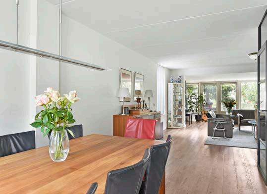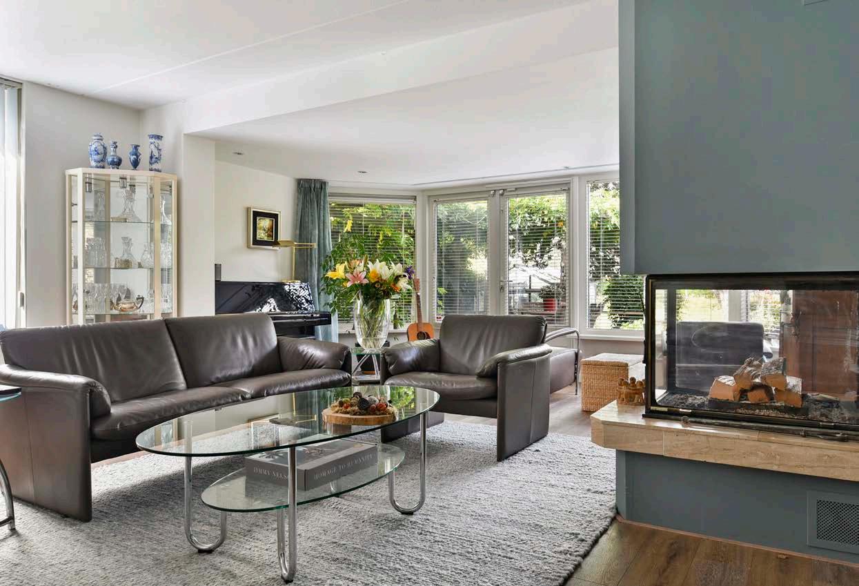 De living aan de achterzijde van de woning is lekker ruim en ook licht door de raampartijen en de open slaande deuren naar de tuin. Hierdoor betrek je bij mooi weer binnen gemakkelijk bij buiten. In de win ter maak je sfeer met de houtgestookte openhaard die centraal in de ruimte ligt waardoor je overal de warmte en de gezelligheid ervaart.