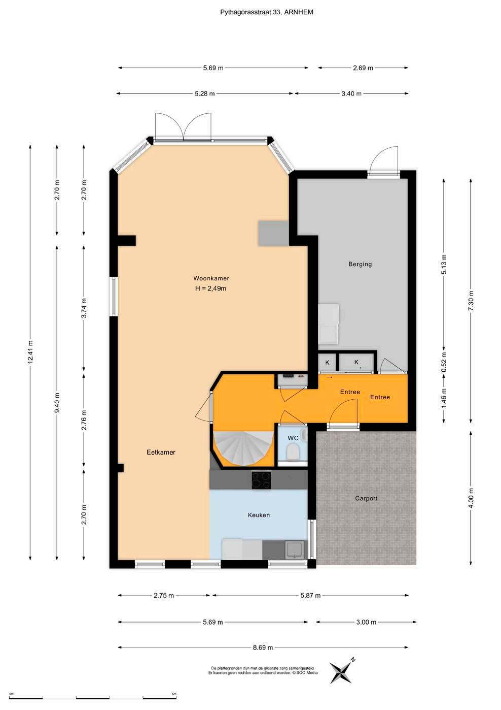 We stappen de woning binnen in de entree met meterkast, garderobekast, separate toilet en de trapopgang naar boven. Ook verleent de hal toe gang tot de berging en de woonkamer, waar we de rondleiding starten.
