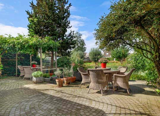 Middels de openslaande deuren aan de achterzijde van de woning stappen we tuin in die is gelegen op het westen. De tuin is door een tuinarchitect aan gelegd met een mix van betegeling, groen, tuinkas op sta hoogte en houtenvlonder aan het water. Er is voldoende ruimte om een gezellige loungeplek en zithoek te creëren waar je na een lange dag werken eventjes heerlijk kunt bijkomen.
