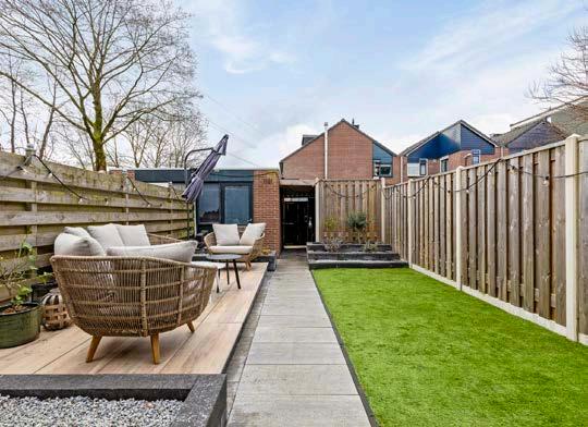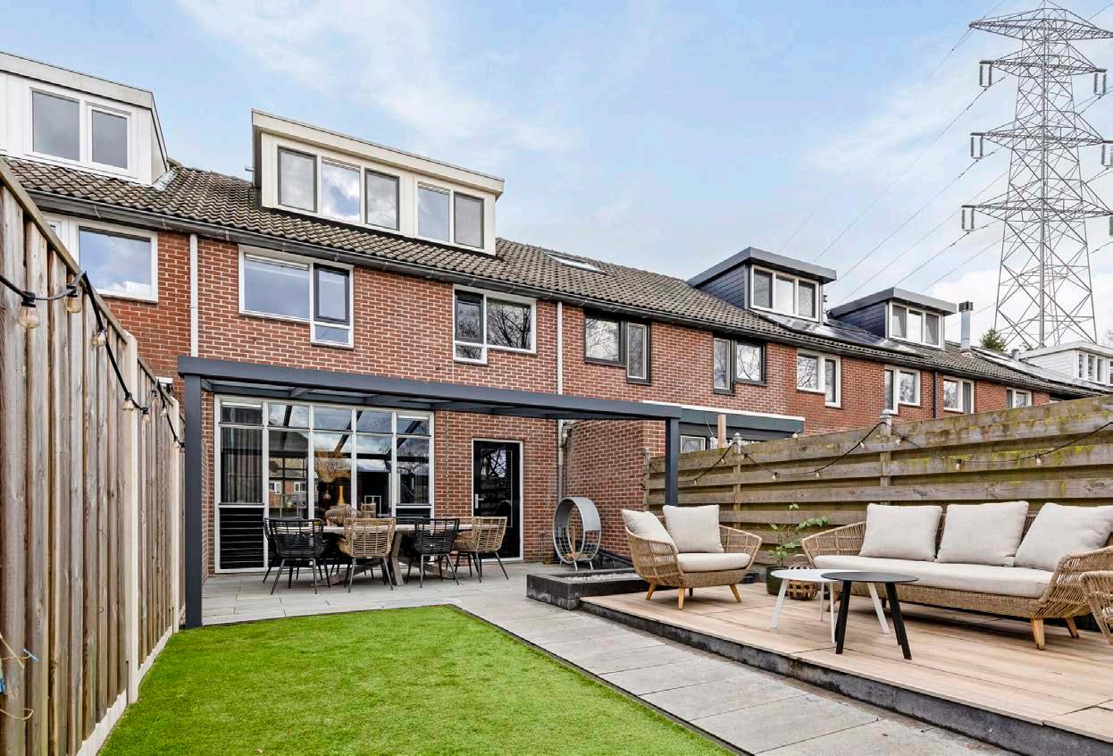 De recent toegevoegde overkapping in de tuin verhoogt het woongenot aanzienlijk. Deze stijlvolle toevoeging biedt een beschutte plek waar je vrijwel het hele jaar door van het buitenleven kunt genieten. Het verlengt de leefruimte van binnen naar buiten en maakt de tuin tot een integraal onderdeel van het huis, waar je ongeacht het weer kunt relaxen en entertainen.