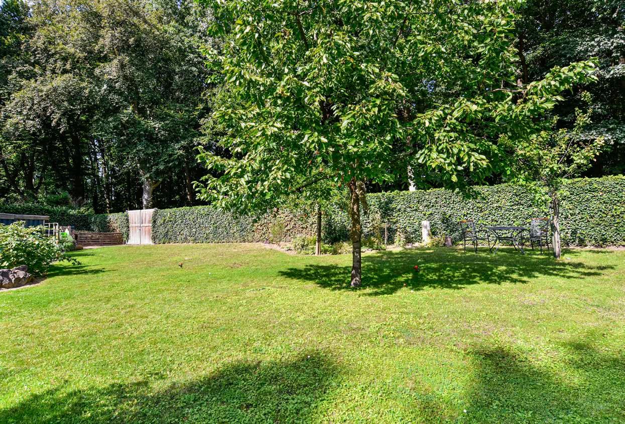 In 2018 kregen we de kans om het huis te kopen. Het was goed en mooi verbouwd; de kamer vergroot en een grote garage met kelder aangebouwd. We hoefden maar enkele persoonlijke veranderingen door te voeren. De tuin is rondom voorzien van hoog gaaswerk met klimop en afsluitbare poorten aan elke zijde.