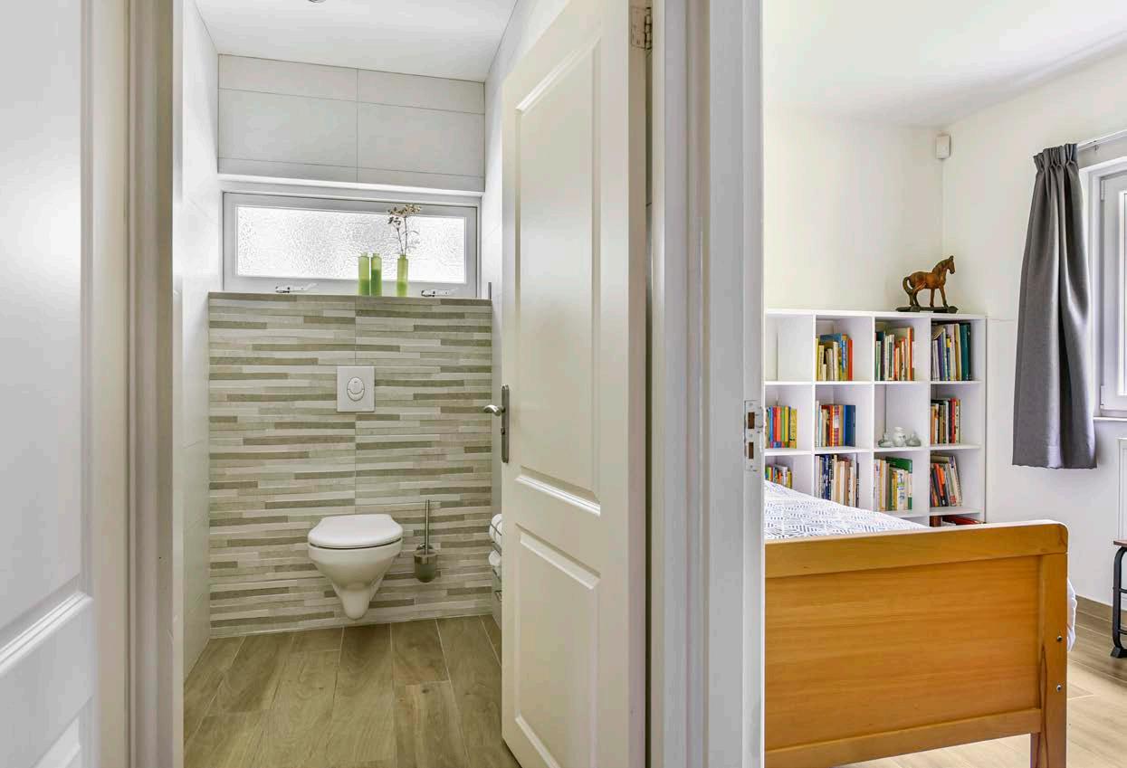 De drie slaapkamers hebben mooie afmetingen en zijn netjes afgewerkt met dezelfde houtlook tegelvloer als de rest van het huis. Daarnaast zijn de wanden voorzien van stucwerk, wat zorgt voor een strakke uitstraling. Indien gewenst is het mogelijk om een zeer ruime slaapkamer en badkamer te realiseren in de geheel geïsoleerde garage.