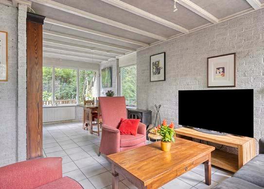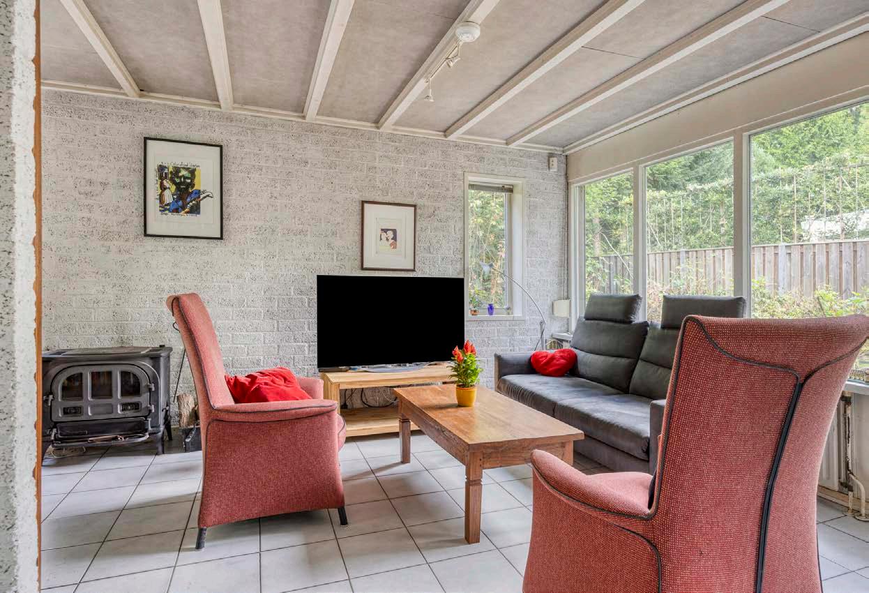 De woonkamer vormt het warm kloppende hart van de woning. Dankzij de grote ramen geniet je hier continu van een prachtig uitzicht op de omliggende tuin. Of je nu lekker op de bank zit met een kop koffie of gezellig vrienden hebt uitgenodigd, de natuur voel je hier overal om je heen