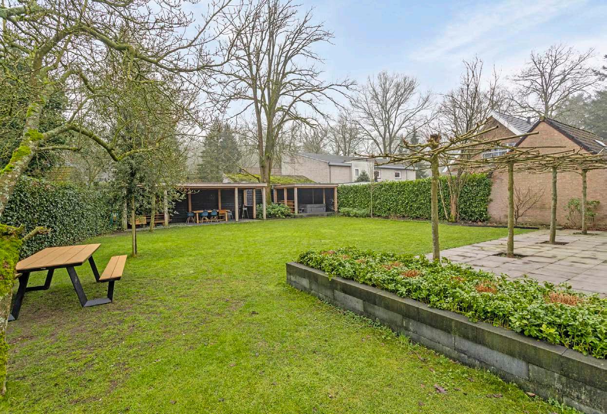 Het royale perceel van 818 vierkante meter is smaakvol aangelegd en biedt een zonnige tuin op het zuidoosten. Geniet van lange zomerdagen op het ruime terras, omringd door groen. Kinderen hebben volop ruimte om te spelen en ontdekken, terwijl volwassenen kunnen ontspannen met een goed boek of een glas wijn. De tuin is een waar paradijs voor tuinliefhebbers en biedt voldoende ruimte voor het aanleggen van een moestuin of het plaatsen van een zwembad. Achterin de tuin staan twee luxe houten overkappingen, een van de overkappingen ingericht met een loungeset en eettafel, de andere overkapping is ingericht met een jacuzzi. Daarnaast bevat de tuin een sproeisysteem.