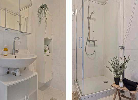 De complete badkamer is uitgerust met een douche, wastafelmeubel en toilet. Er is ook een aansluiting voor de wasmachine, wat het dagelijks gebruik gemakkelijk maakt.