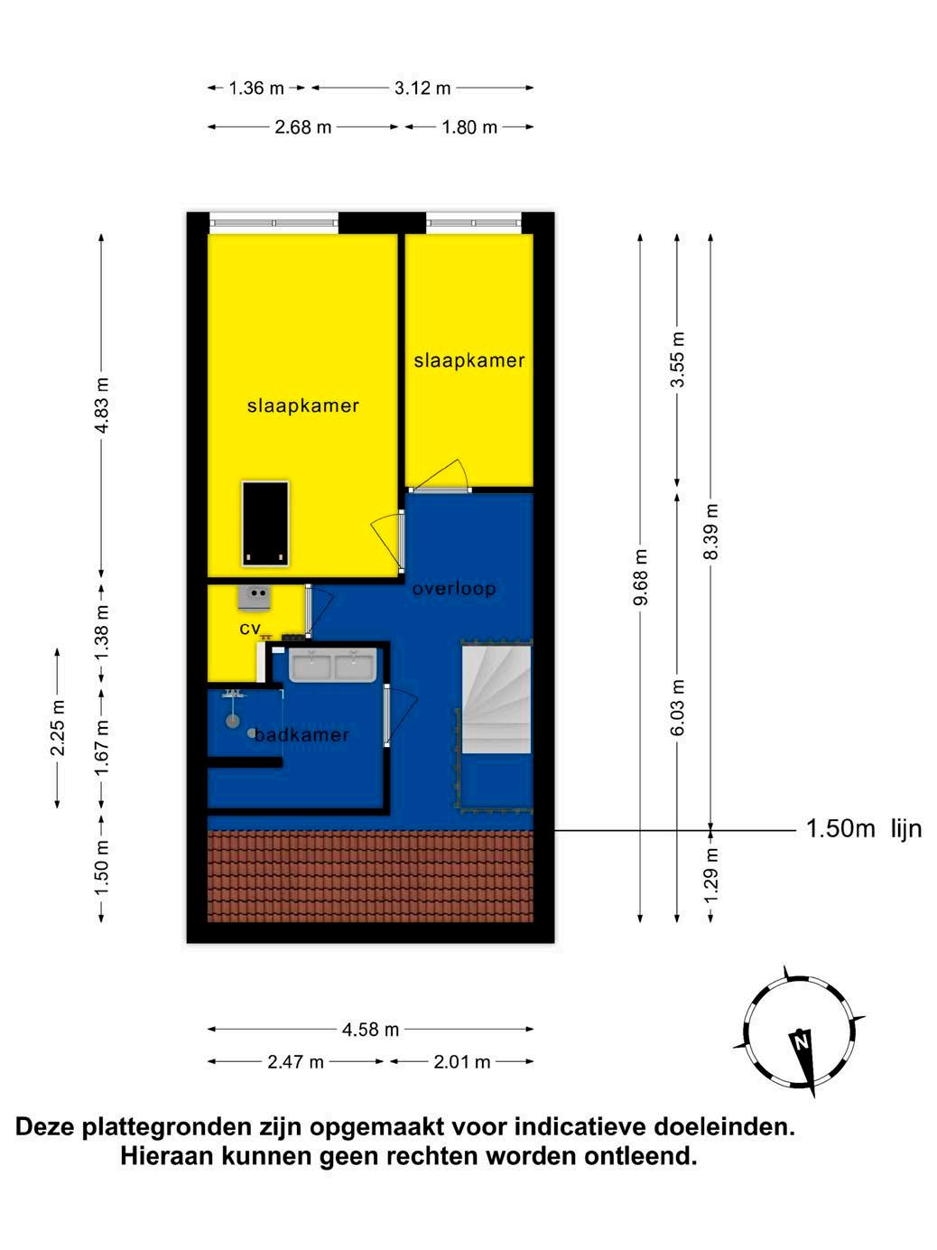 Vanaf de overloop bereik je de twee slaapkamers, de badkamer en de berging met de cv-ketel. De slaapkamers zijn prima van formaat en keurig afgewerkt met laminaat en lichte wandafwerking. Voor extra bergruimte heb je de beschikking over een bergvliering (vide) in de grootste slaapkamer. Beide slaapkamers zijn voorzien van veel lichtinval.