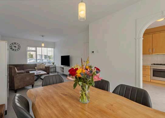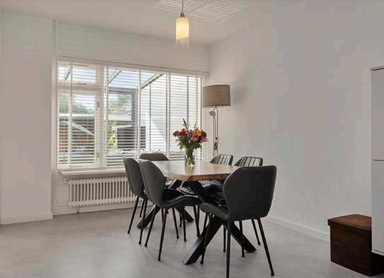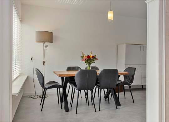 De woon-/eetkamer is zeer smaakvol afgewerkt met een oog voor detail. De keuze voor lichte kleuren draagt bij aan de ruimtelijkheid en maakt de woning nog aantrekkelijker. De grote ramen laten veel natuurlijk licht binnen en creëren een aangename sfeer.