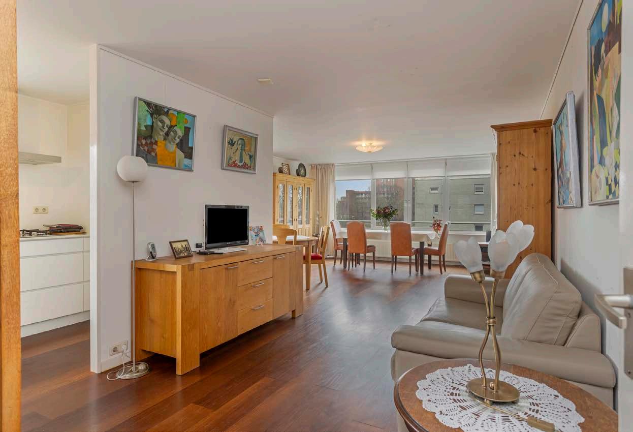 Ruime woonkamer: De ruime woonkamer is het kloppende hart van het appartement. Hier is genoeg ruimte voor een grote bank, een eettafel en zelfs een werkhoekje. De L-vormige indeling zorgt voor een natuurlijke scheiding tussen de verschillende leefgebieden, terwijl de open verbinding met de keuken zorgt voor een gezellige en sociale sfeer.