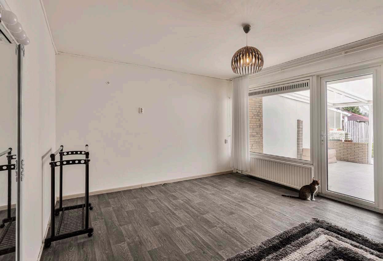 Aan de achterzijde van de begane grond bevindt zich een ruime kamer die voor verschillende doeleinden gebruikt kan worden. Of je nu een thuiswerkplek nodig hebt, een speelkamer voor de kinderen wilt inrichten of een rustige tv-kamer zoekt, deze ruimte biedt talloze mogelijkheden. De kamer heeft grote ramen die veel licht binnenlaten en een deur die direct toegang geeft tot de tuin.