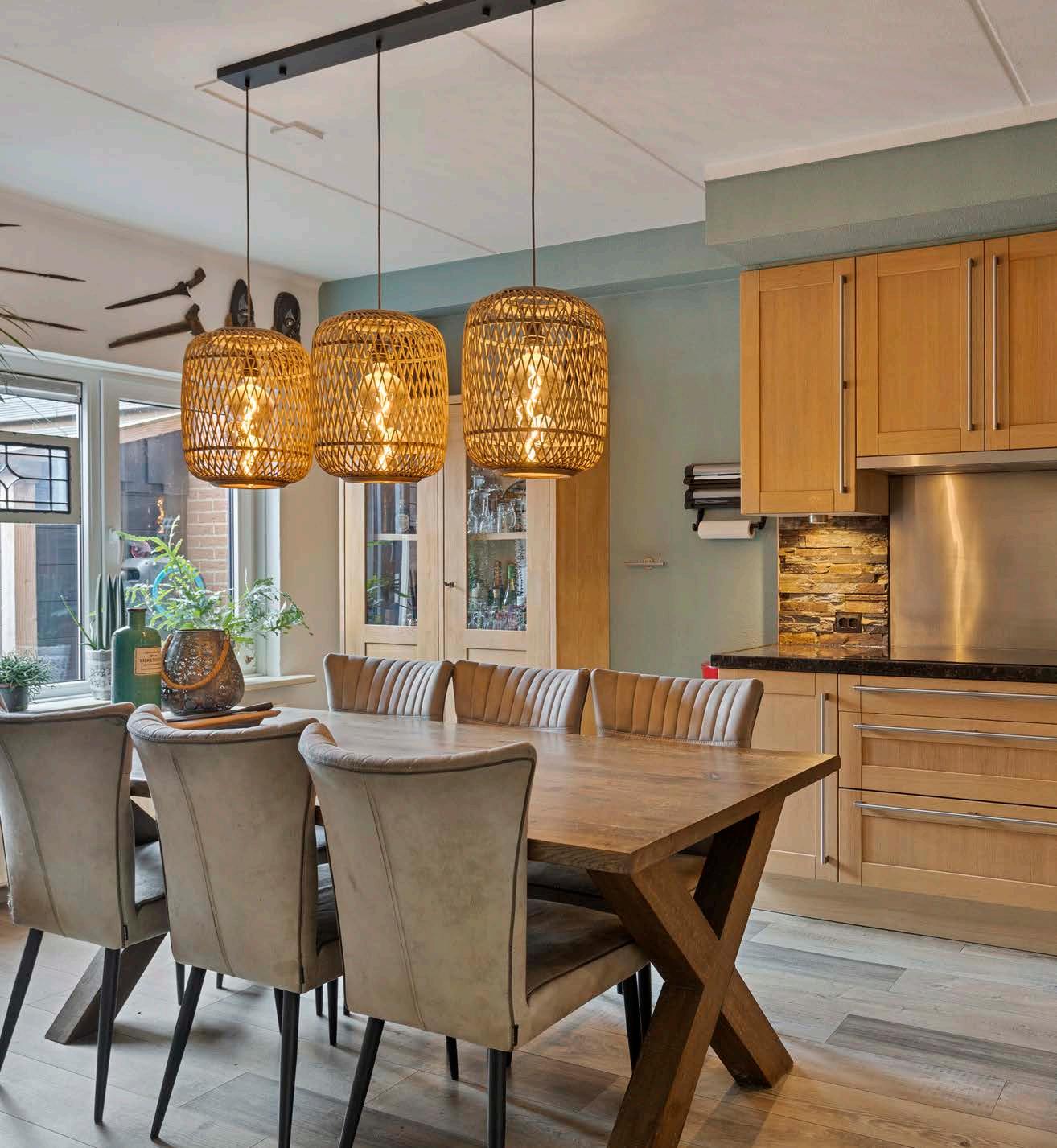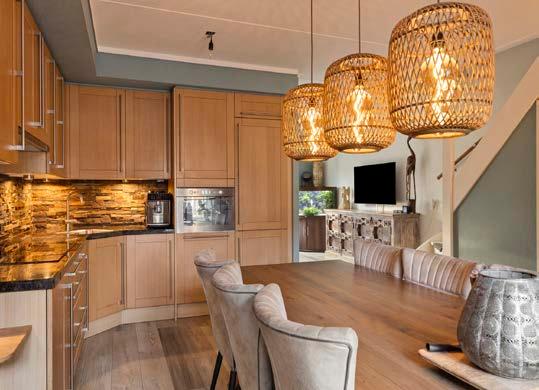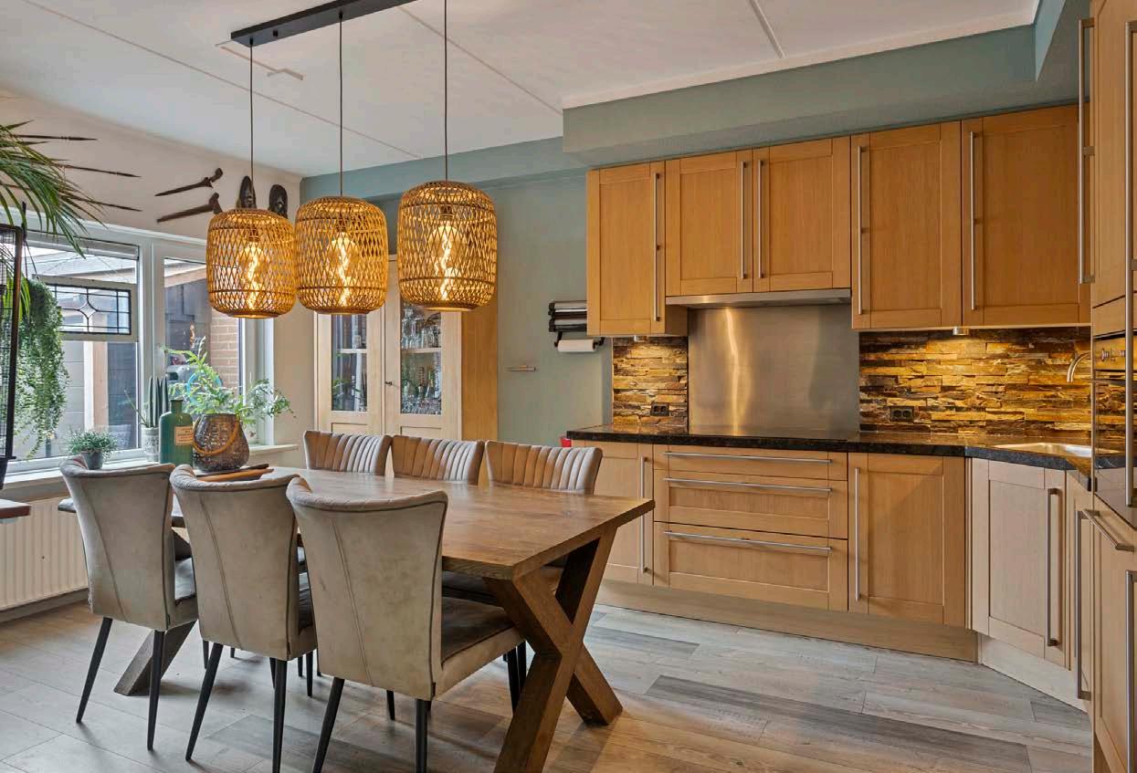 De half open keuken is functioneel en prettig voor gezinnen die graag samen tijd doorbrengen. De doorloop naar de woonkamer maakt het eenvoudig om contact te houden met het gezin terwijl er gekookt wordt. De keuken biedt voldoende kastruimte en is voorzien van moderne apparatuur.