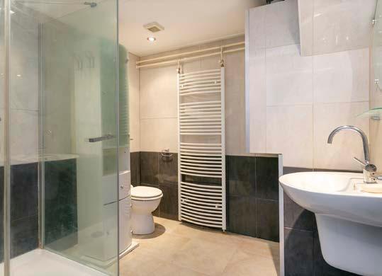 Op de eerste verdieping bevinden zich twee slaapkamers en de ruime badkamer, voorzien van volledige betegeling, een wastafel, toilet, handdoekradiator en een douchecabine.