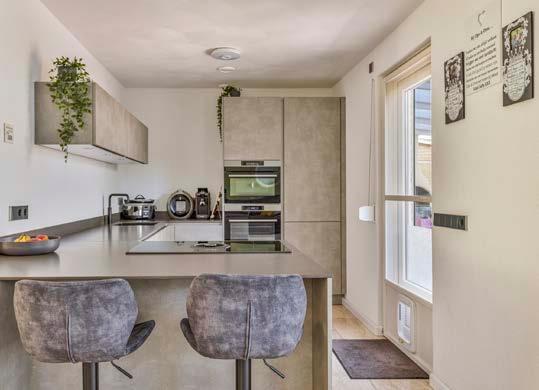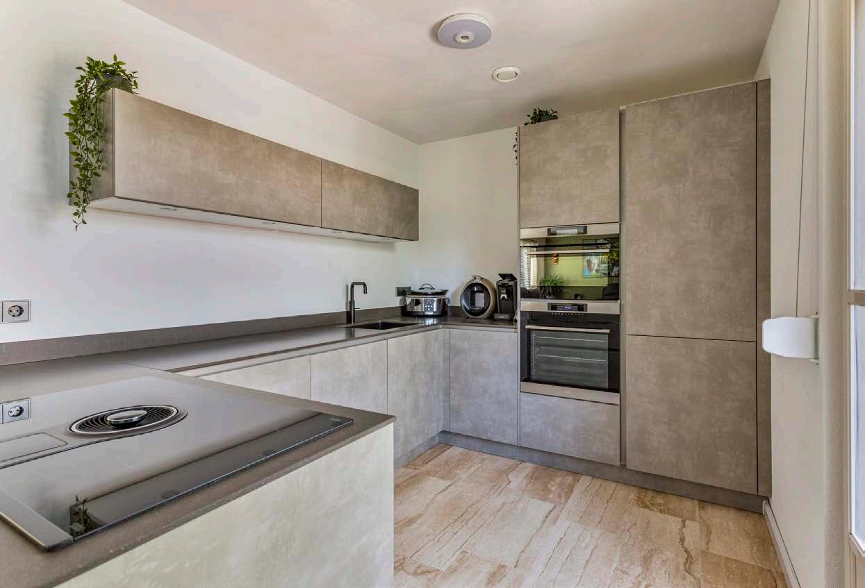 De keuken, vernieuwd in 2020, is voorzien van alle moderne gemakken die je mag verwachten in een hedendaags huis. Met een geïntegreerde vaatwasser, combi-oven, koelkast, diepvries, kookplaat en Quooker, is deze keuken perfect voor zowel dagelijks gebruik als voor het ontvangen van gasten. De keuken staat in open verbinding met de woonkamer.