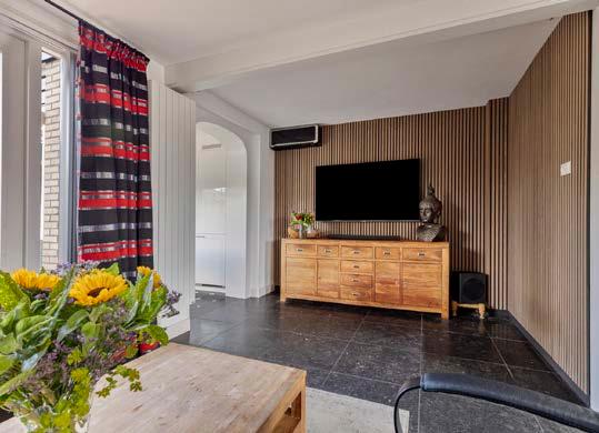 Zodra je binnenstapt, word je begroet door een lichte en ruime woonkamer, die dankzij de hoekligging baadt in het daglicht. De uitbouw op de begane grond is nu in gebruik als keuken en bijkeuken en zorgt voor een extra dimensie aan de leefruimte.