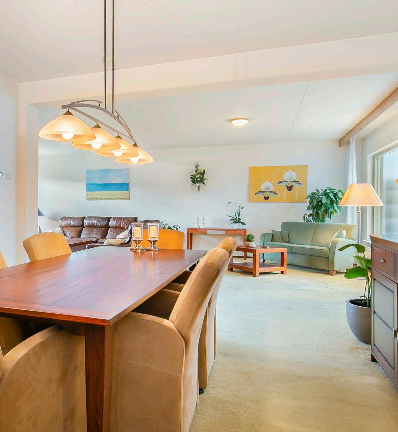 De royale L-vormige living is het kloppend hart van de woning. Met 62 m2 aan ruimte, grote raampartijen en een open haard, is dit de ideale plek voor ontspanning en samenzijn.