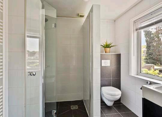 De badkamer is een plek waar je je heerlijk kunt ontspannen. Deze nette ruimte is voorzien van een moderne inloopdouche, een closet en een stijlvol badmeubel. Alles is keurig afgewerkt en zorgt voor een luxe gevoel. De inloopdouche biedt voldoende ruimte om comfortabel te douchen, terwijl het badmeubel veel opbergruimte biedt.