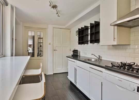 De separate woonkeuken is een ideale plek voor kookliefhebbers. Uitgerust met inbouwapparatuur en een keurig afgewerkte inrichting, maakt deze keuken elke maaltijd een plezier om te bereiden. De ruime opzet biedt voldoende werkruimte en opbergruimte voor al je keukengerei. De grote ramen zorgen voor veel daglicht, waardoor je tijdens het koken kunt genieten van het uitzicht op de zonnige achtertuin. Hier organiseer je met gemak gezellige etentjes voor vrienden en familie.