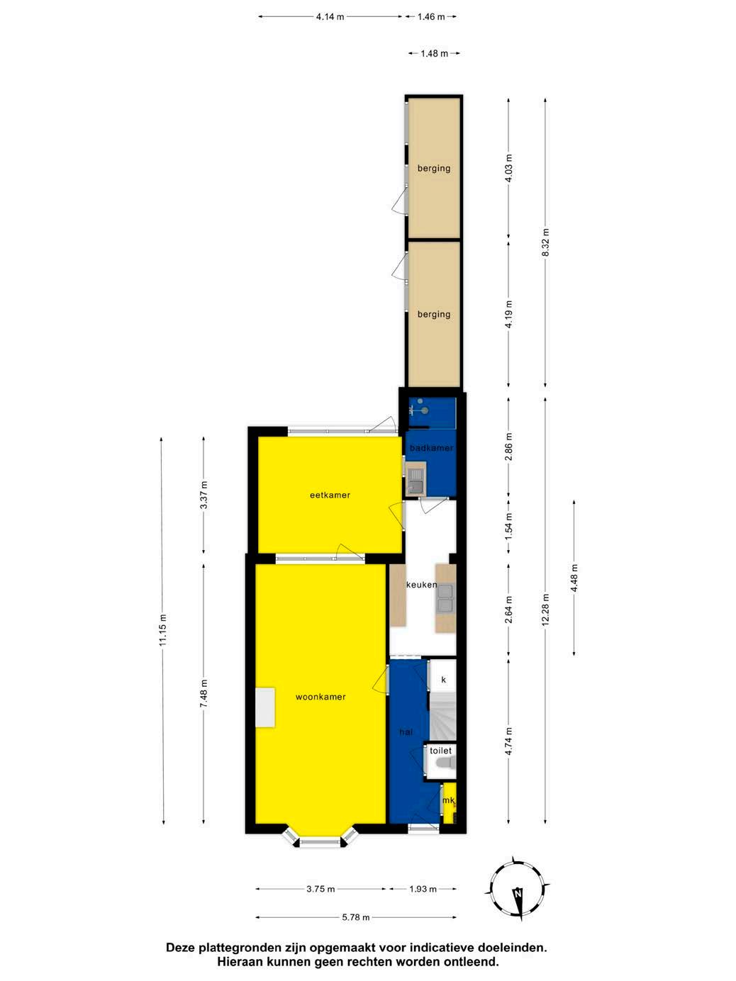 Bij binnenkomst in de hal vind je de meterkast, het separate toilet met fonteintje, de ruime kelderkast onder de trap en de trapopgang naar de eerste verdieping. Laat je verrassen door het royale karakter van deze tussenwoning. Hoewel de afwerking nog basic is, heeft de woning enorm veel potentieel. Houd er wel rekening mee dat er geen CV-ketel aanwezig is, alleen een geiser.