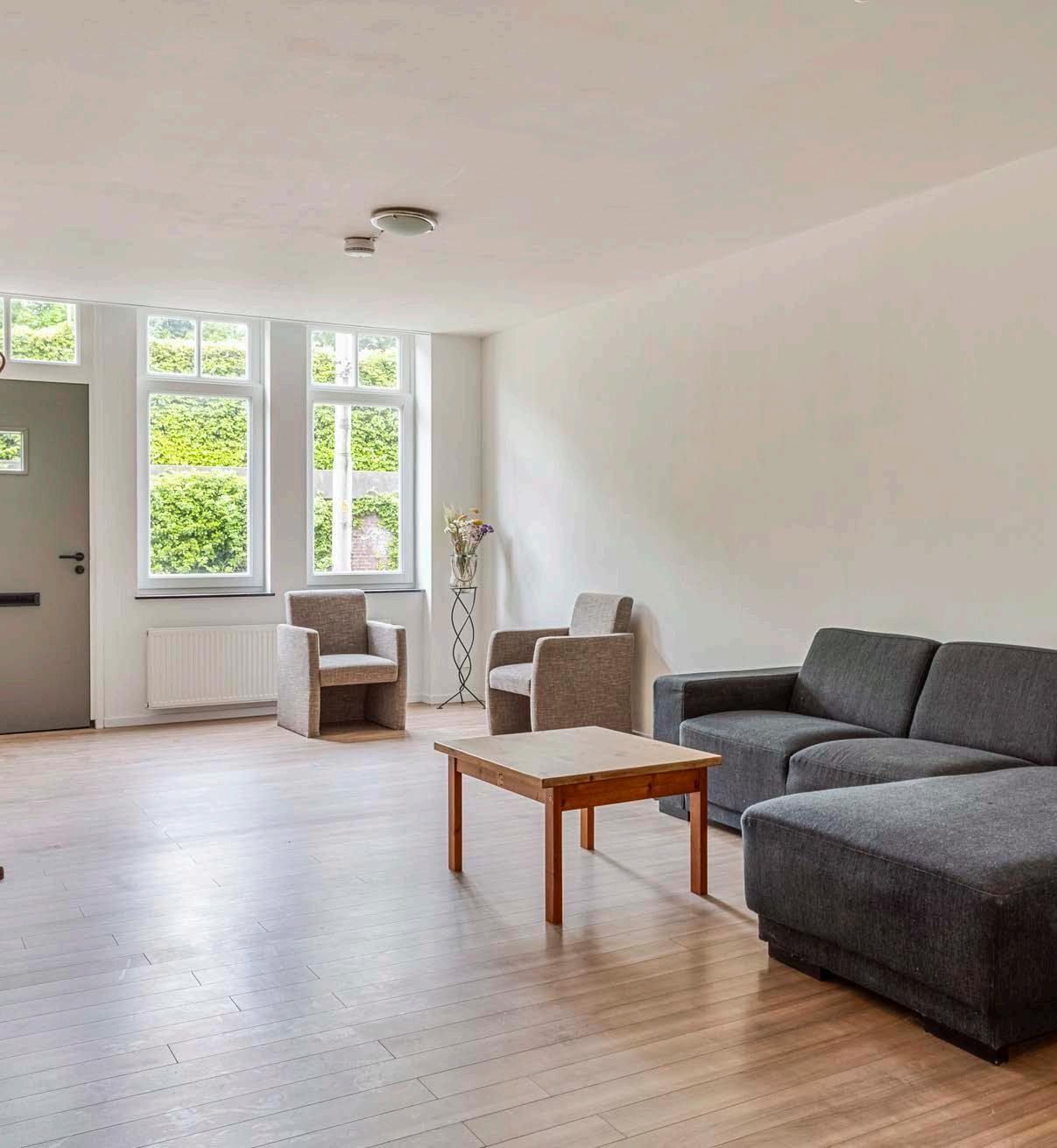 Stap binnen in een woonkamer waar ruimte en licht samensmelten tot de perfecte achtergrond voor jouw leven. Met ruim 40 m2 aan oppervlakte biedt deze kamer alle ruimte voor een grote zithoek, een eetgedeelte en zelfs een werkhoek, zonder dat het ooit vol aanvoelt. De ramen zorgen voor een natuurlijke lichtinval die de kamer een open en uitnodigende sfeer geeft. Hier kun je gasten ontvangen, ontspannen na een drukke dag of simpelweg genieten van de rust en ruimte die deze woonkamer je biedt.