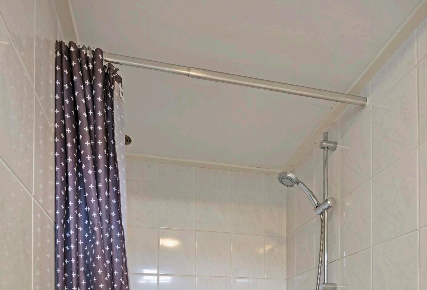 De badkamer is voorzien van een inloopdouche, wastafel en de aansluiting voor de wasmachine en elektrische boiler.