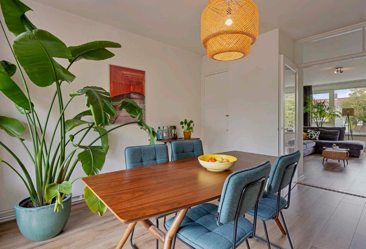 De eetkamer grenst aan het balkon die uitkijkt op het plein en is lekker ruim. Zit je graag apart van de woonkamer met je gasten of wil je ongestoord kunnen werken aan tafel. Dan sluit je de dubbele deuren en hebt een aparte ruimte. Ook fijn voor als je werkt aan huis. Er is meer dan genoeg ruimte voor een lekkere grote eettafel.