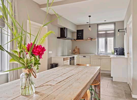Als je de woning binnentreedt is direct zichtbaar en voelbaar dat de oudheid van dit huis een smaakvolle mix geeft gekregen met de materialen van nu. De woning heeft een mooie ruime hal, waarbij de eiken trap een echte eyecatcher is. De vloer in de hal bestaat uit RAW stones in waalformaat, welke direct een sfeerbeeld geeft van de gehele woning. Vanuit de hal kom je terecht in de ruime woonkeuken, geheel voorzien van inbouwapperatuur, zoals een grote oven, keramische kookplaat en vaatwasser. De keuken vormt het hart van het huis en heeft een directe, open verbinding met de woonkamer.