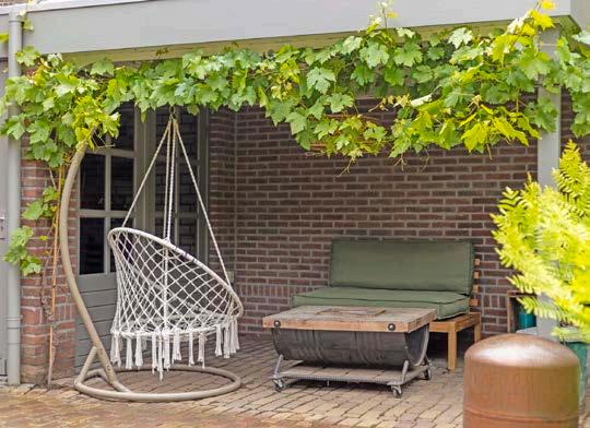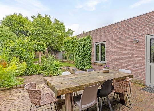 Netjes verzorgde en volwassen tuin op het oosten, waarin de notenboom met schommel het plaatje compleet maakt. De tuin is opgedeeld in verschillende niveau’s, wat een speels effect geeft. Er zijn diverse zitplekken gecreëerd, waaronder een knusse plek met overkapping. Ook is er een gemetseld tuinhuis aanwezig, met een overkapping voor extra opslagruimte.