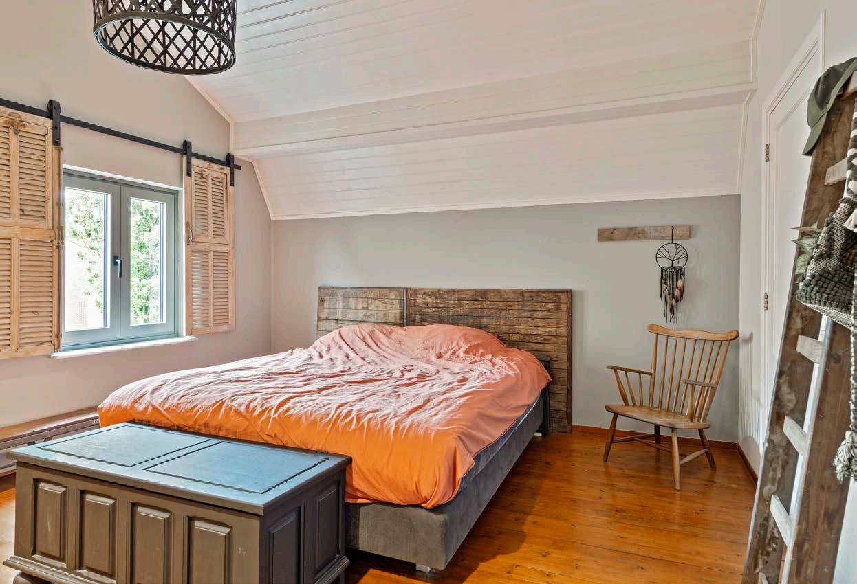 Stap de ruime woonkamer binnen en raak meteen in de ban van de sfeervolle ambiance. De fraai afgewerkte muren vormen het decor waarin jouw meubels tot hun recht komen. Een mooie houten balk is geplaatst om een open verbinding te maken tussen de keuken en woonkamer. De grote ramen en openslaande deuren naar de tuin, dragen bij aan een lichte, uitnodigende ruimte waarin elk hoekje uitstraalt: hier wordt geleefd, gelachen en ontspannen.