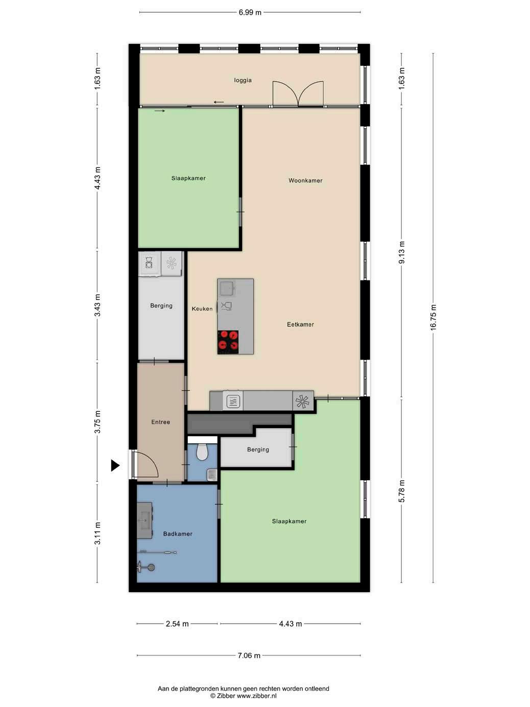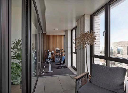 De aangrenzende loggia strekt zich uit over de gehele breedte van het appartement en biedt een extra buitenruimte om te ontspannen en te genieten van het buitenleven. Het is de perfecte plek om te genieten van een kopje koffie in de ochtend of een glas wijn in de avond.