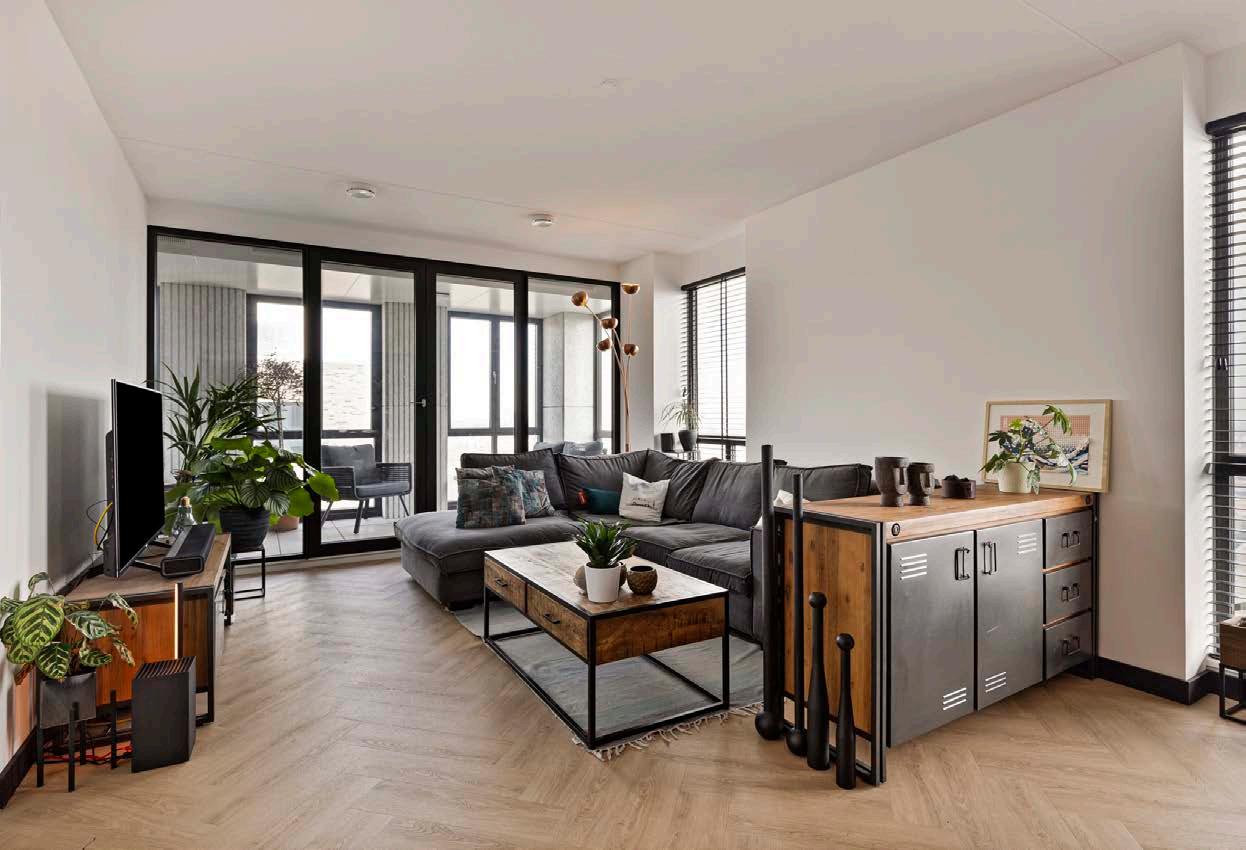 De woonkamer van dit appartement is ruim en licht, dankzij de grote ramen die zorgen voor een overvloed aan natuurlijk licht. Het is de perfecte plek om te ontspannen en te genieten van het uitzicht op de omgeving.