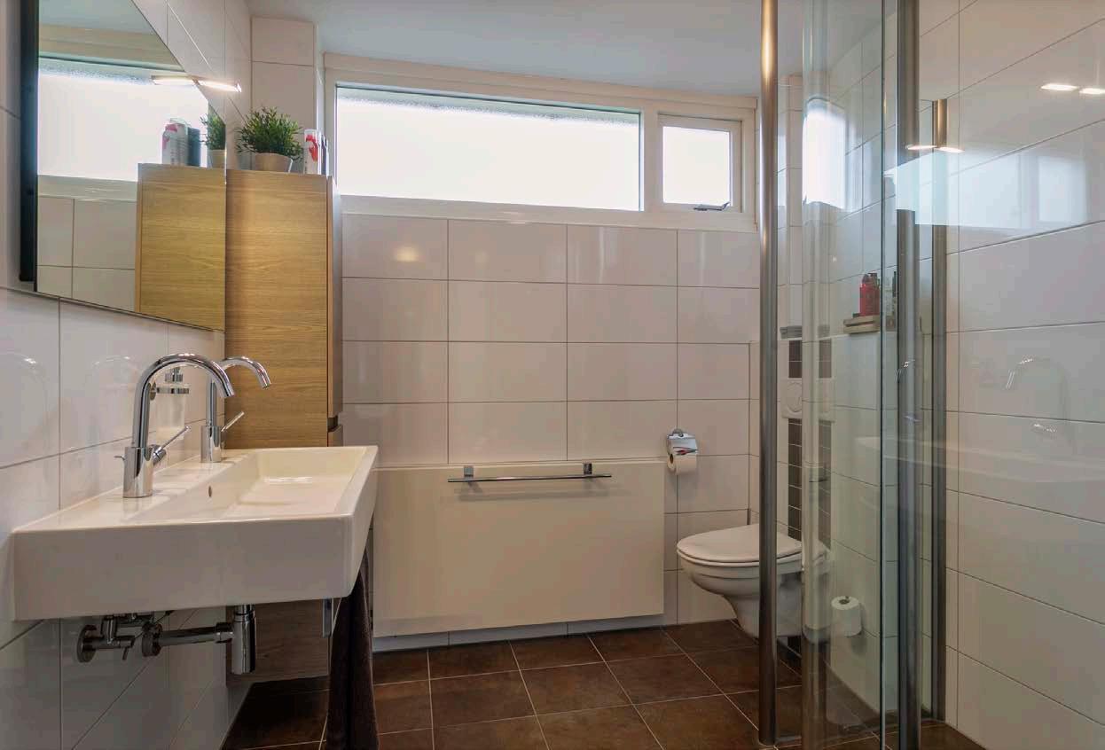 De badkamer is keurig en ingedeeld met een douche, tweede toilet en dubbele wastafel met meubel. Spoel de dag van je af!