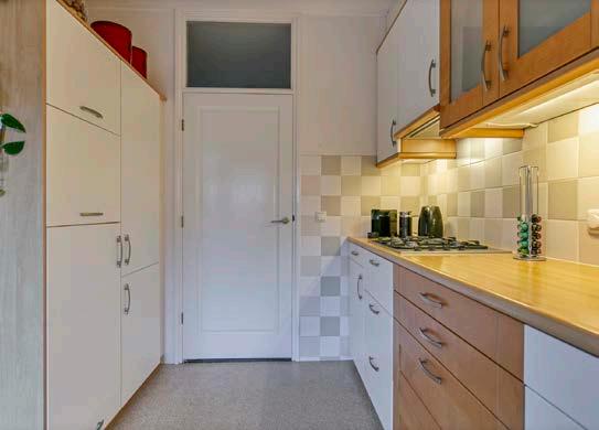 De half open keuken kan eventueel nog meer geopend worden door het verwijderen van het overige stuk van het muurtje. De keuken is netjes onderhouden en onder andere voorzien van een vaatwasser, wat het huishouden een stuk gemakkelijker maakt.
