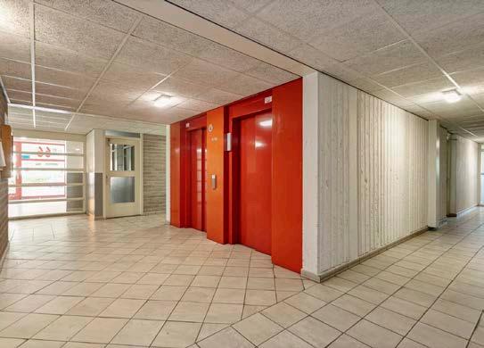 Aan de voorzijde van het appartementencomplex zijn de brievenbussen, het bellentableau en de toegang tot de eigen berging. In de gezamenlijke hal staan twee liften klaar om je naar de verschillende woonlagen te brengen.