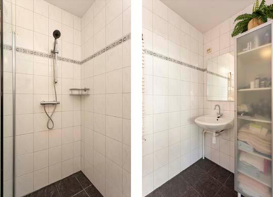 In de badkamer bestaat de indeling uit een douche, wastafel en een aangrenzende afsluitbare toiletruimte.