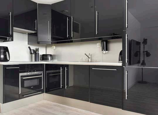 De moderne hoogglans keuken heeft voornamelijk Siemens keukeninrichting in L-opstelling, een aanrechtblad met spoelbak, een inductiekookplaat, een afzuigkap, een vaatwasser, een ingebouwde koel-/vriescombinatie en genoeg kastruimte.
