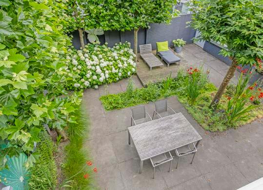 Je woont hier écht in het groen; veel bomen in de straat en groene voortuinen. Onze achtertuin is niet enorm groot maar wel heel breed en heerlijk zonnig (op het zuidoosten). In de voortuin op het zuidwesten