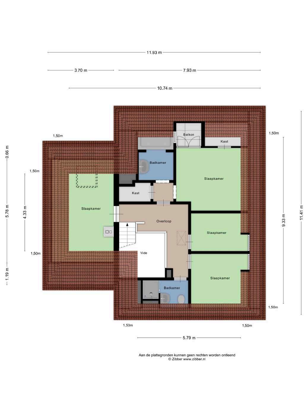 Op de eerste verdieping bevinden zich vier slaapkamers, elk met hun eigen charme. Slaapkamer 1, boven de garage, heeft een dakraam en aansluiting voor wasapparatuur. Slaapkamer 2, aan de achterzijde, beschikt over dubbele deuren naar het balkon en twee inbouwkasten, en biedt directe toegang tot de eerste badkamer met ligbad en wastafel. Slaapkamer 3 en 4 zijn beide voorzien van een dakkapel, wat extra ruimte en licht biedt. De tweede badkamer is uitgerust met een douche, wastafel en toilet.