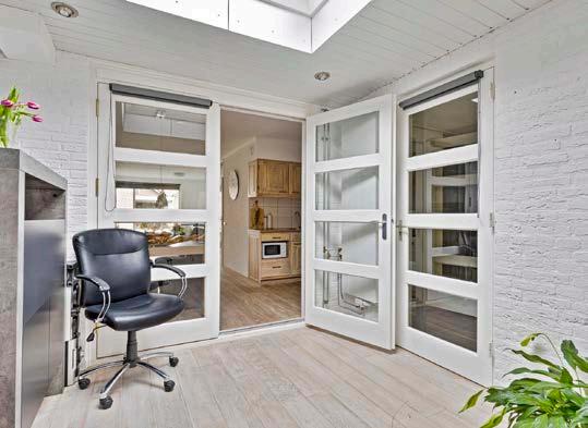 De praktische bijkeuken en de inpandige garage, met een handige zolder, biedt een overvloed aan opbergruimte.