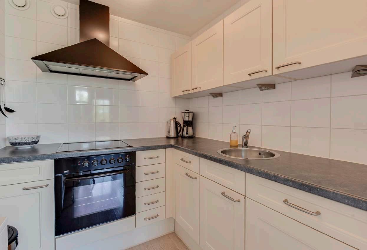 De half open keuken uitgerust met een moderne 4-pits inductieplaat, een vaatwasser, ruime koelkast en een oven. Deze keuken is klaar voor elk recept. Of je nu een snelle hap bereidt of een uitgebreid diner voor vrienden, deze keuken maakt elke maaltijd tot een plezierige bezigheid.