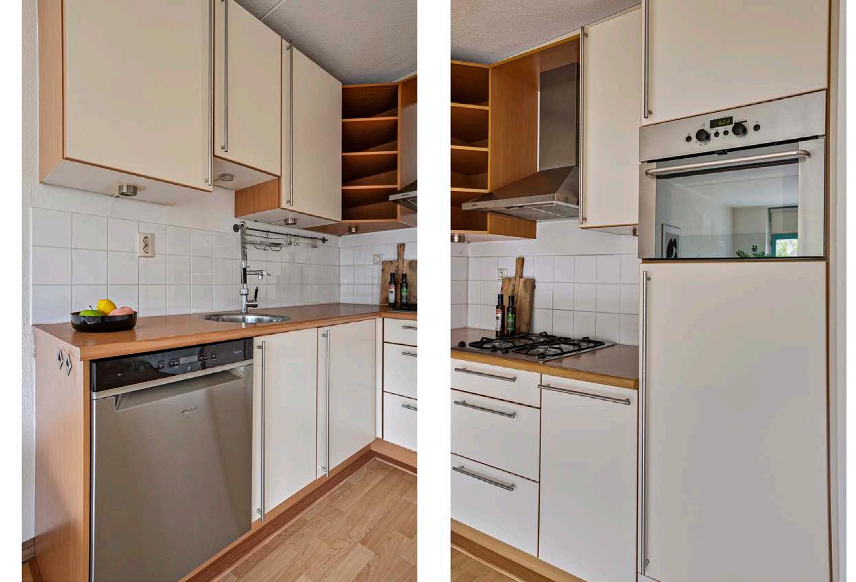 Koken wordt een feestje in deze moderne open keuken. Uitgerust met een 4-pits gaskookplaat, een koelkast, een vaatwasser uit 2021 en een afzuigkap, zijn alle ingrediënten aanwezig voor het bereiden van heerlijke maaltijden. De open opstelling zorgt ervoor dat je altijd in contact blijft met je gasten.