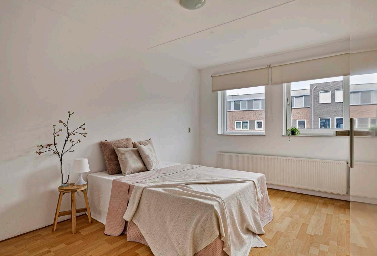 De twee ruime slaapkamers bieden volop mogelijkheden. Richt de ene in als een gezellige slaapkamer met een comfortabele sfeer en de andere als een praktische werkkamer of een creatieve hobbyruimte. De royale afmetingen en het natuurlijke licht maken elke kamer een prettige plek om te verblijven.