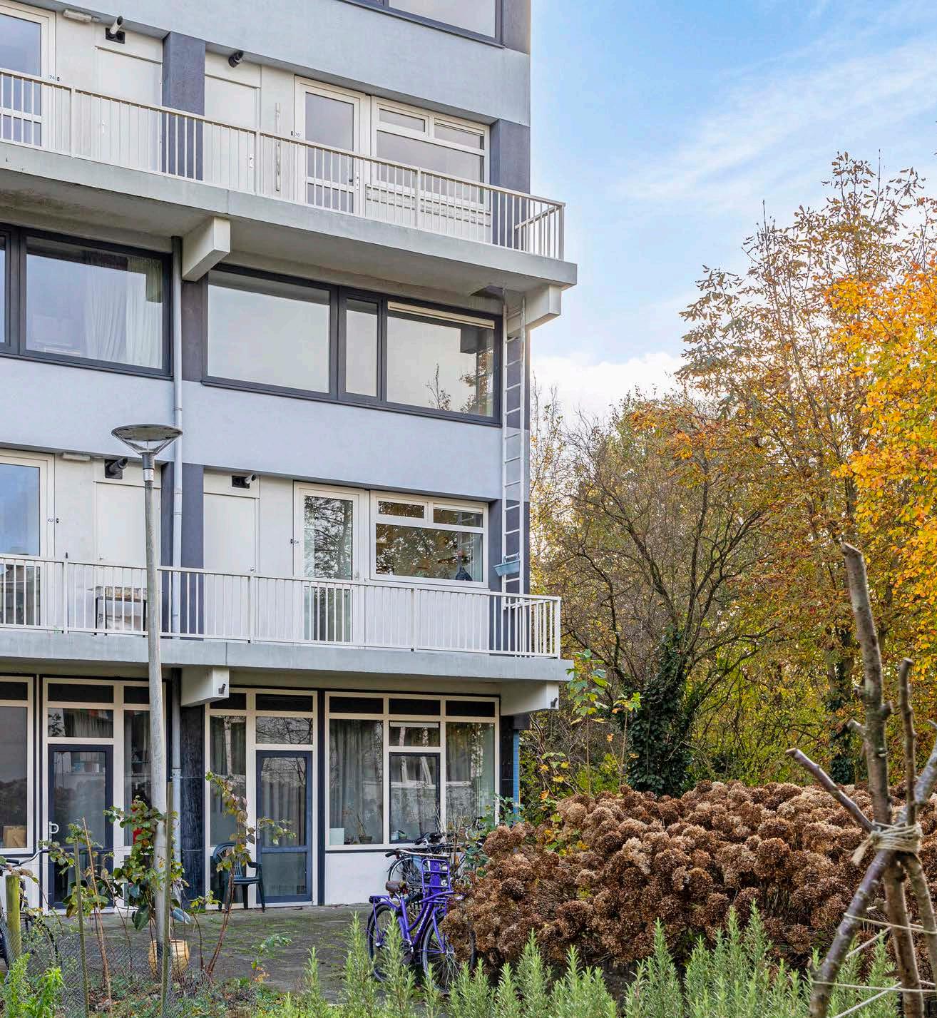 Aan de voorkant van het gebouw bevindt zich nog een grote groene strook, een soort van openbare ruimte met moes- en plantentuintjes waardoor je lekker vrij in het groen kijkt.