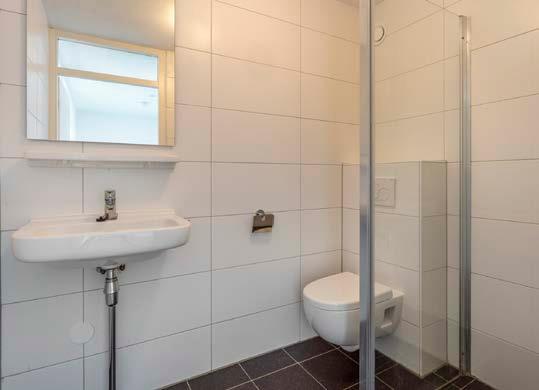 De badkamer is praktisch en netjes, voorzien van een douche, toilet en wastafel. Hier kun je de dag beginnen met een verfrissende douche of afsluiten met een moment van ontspanning.