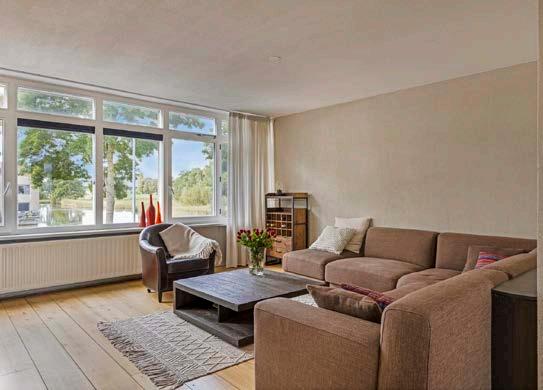 Ruime woonkamer met vrij uitzicht. De royale woonkamer is de perfecte plek voor het hele gezin om samen te komen. Hier voel je je meteen thuis. Dankzij de grote ramen geniet je van een prachtig en vrij uitzicht op het omliggende natuurgebied en de waterpartij en is het een heerlijk lichte ruimte.