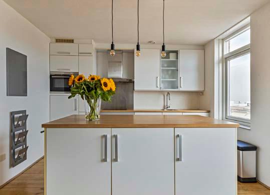 grenzend aan de achtertuin. Op de eerste verdieping de ruime en lichte woonkamer met leefkeuken en een uitzicht dat nooit gaat vervelen en verandert met de seizoenen. Boven twee slaapkamers met een eigen badkamer en een ruim balkon op het zuidwesten waar we heel vaak genieten van de avondzon.