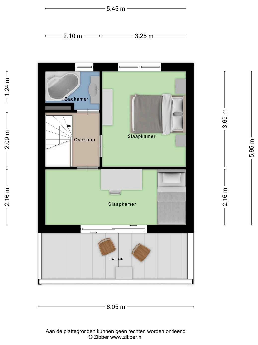 Op de tweede verdieping zijn twee ruime slaapkamers. De badkamer is voorzien van een ligbad en wastafel. Vanuit de voorste slaapkamer heb je toegang tot het grote balkon op het zuidwesten, een heerlijke plek om te ontspannen met een goed boek of een kopje koffie en waar je ‘s avonds kunt genieten van de zonsondergang.