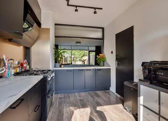 De open keuken is modern en praktisch met voldoende werkruimte.