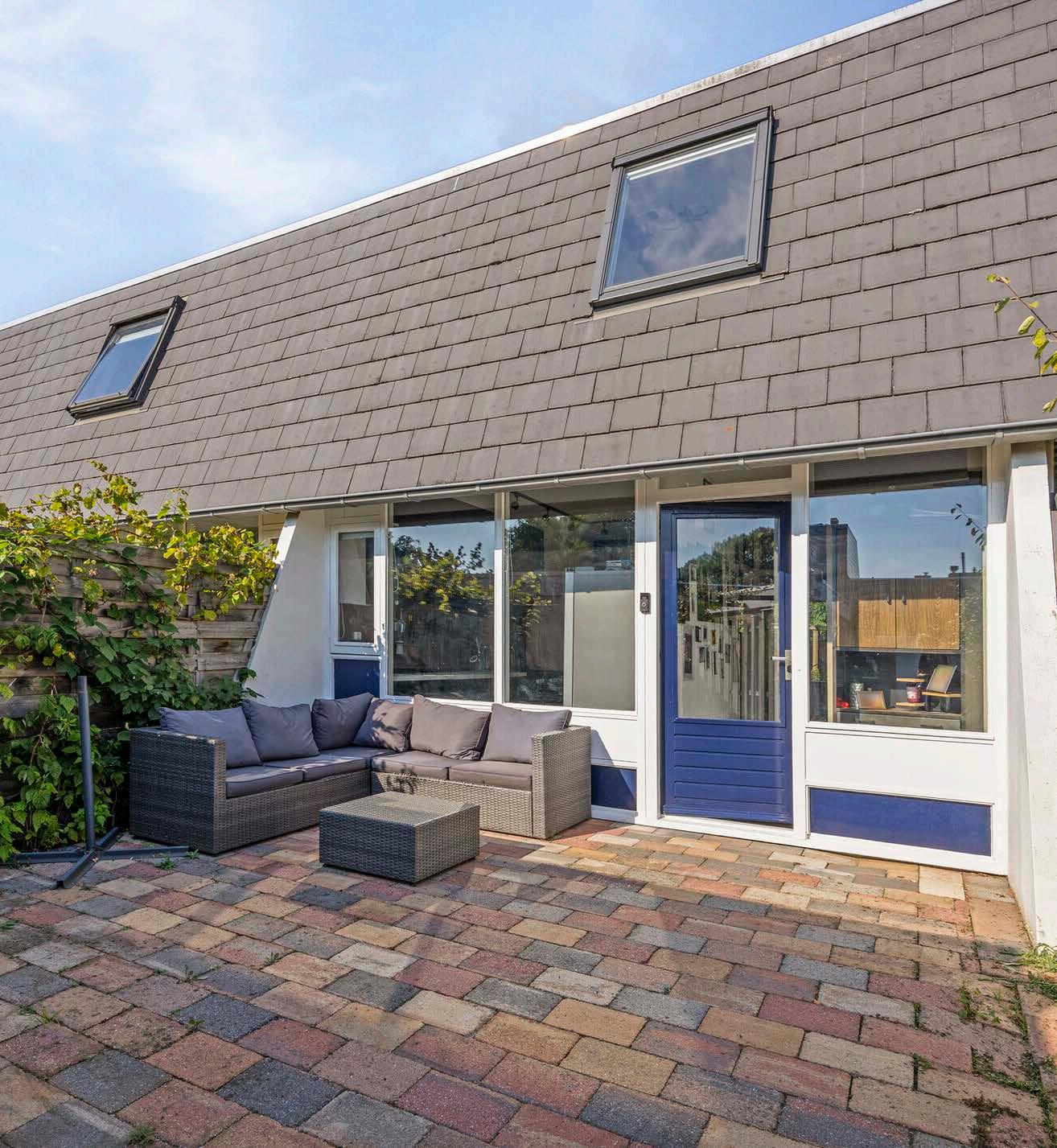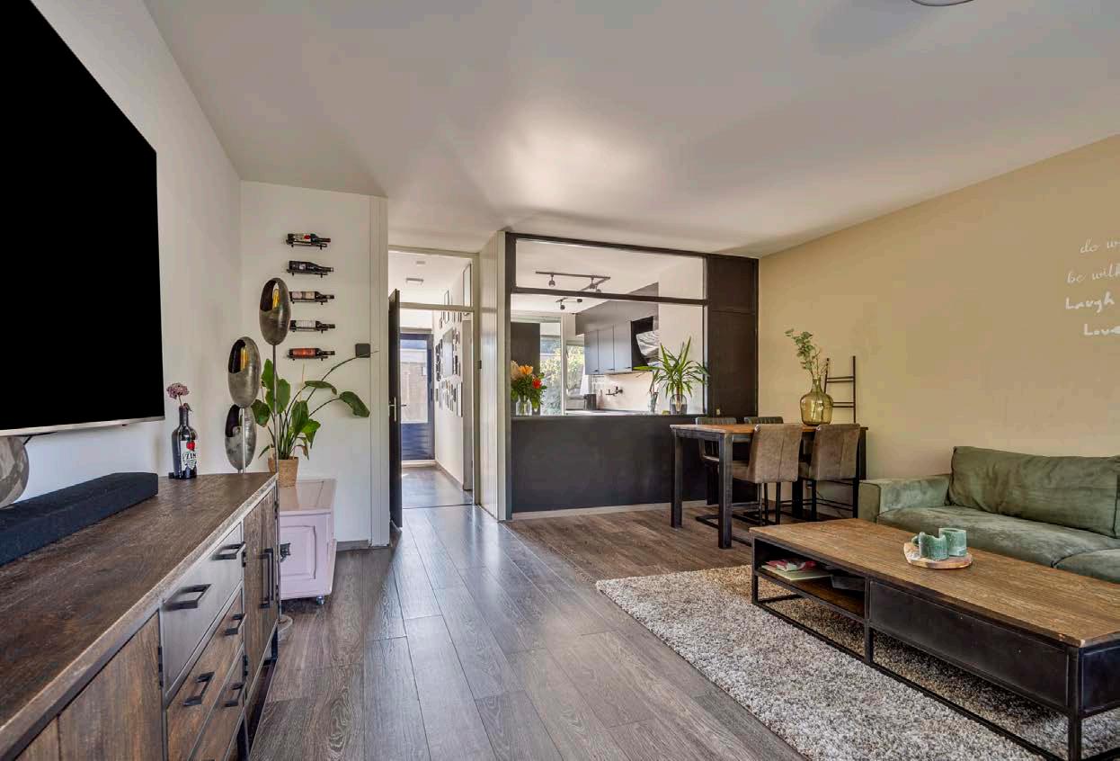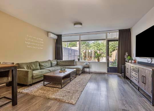 De woonkamer is voorzien van airco en heeft grote ramen die veel natuurlijk licht binnenlaten en uitkijken op de diepe tuin. De ruimte is perfect ingericht. Via de woonkamer heb je toegang tot de tuin die zich achter het huis uitstrekt.