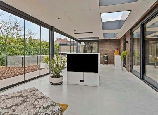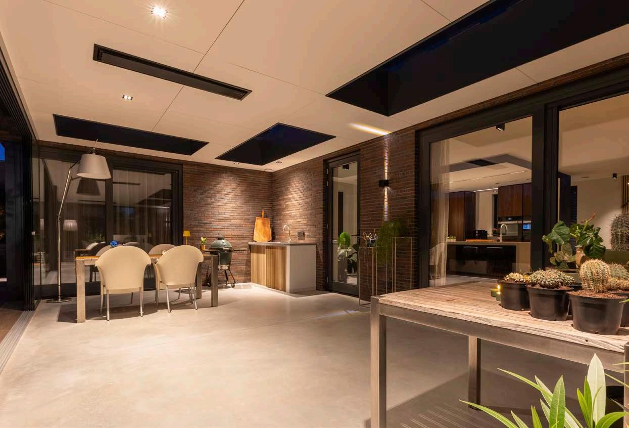 Het overdekte terras is een ware toevoeging aan het woongenot. Deze ruimte laat je optimaal genieten van het buitenleven, ongeacht het weer. Denk aan lange zomeravonden met vrienden, of knusse wintermomenten met een warme drank. Het terras is ontworpen om het hele jaar door een favoriete plek te zijn, beschut en comfortabel, terwijl je toch verbonden blijft met de natuurlijke schoonheid van de tuin.