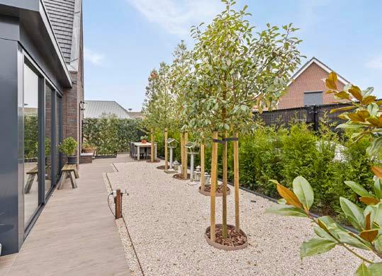 De prachtig aangelegde tuin is een lust voor het oog, maar vraagt weinig van je kostbare tijd. Het ontwerp is zodanig dat je optimaal kunt genieten van het groen zonder urenlang bezig te zijn met onderhoud. Met een ligging op het noordoosten profiteer je van de ochtendzon, perfect voor een rustige start van de dag met een kop koffie te midden van de natuur.